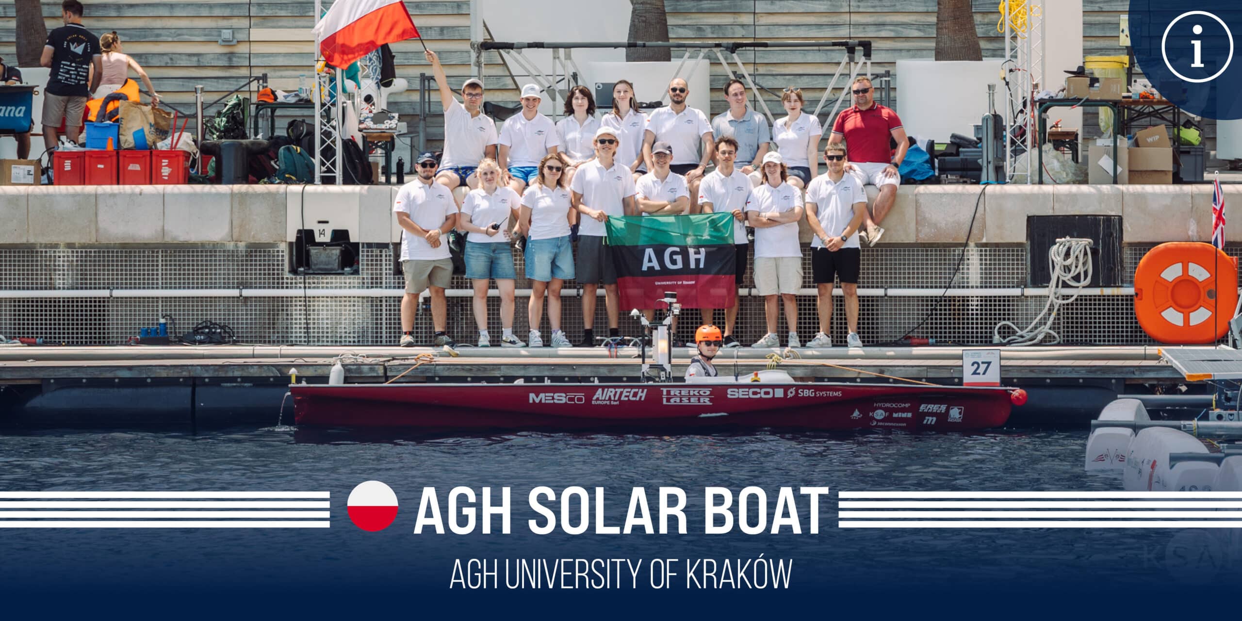 AGH Solar Boat est une équipe d’environ 100 étudiants en ingénierie, représentant la quasi-totalité des facultés de notre université. Nous concevons et construisons des bateaux solaires et autonomes. Nous participons au Monaco Energy Boat Challenge depuis 2017 : d’abord en Solar Class, puis aujourd’hui en AI Class.